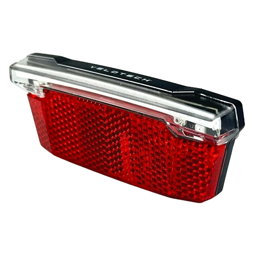 A Velotech e-bike első lámpa csomagtartóhoz rögzíthető kivitelben. Tartós, erős fényű és energiatakarékos megoldás elektromos kerékpárokhoz.