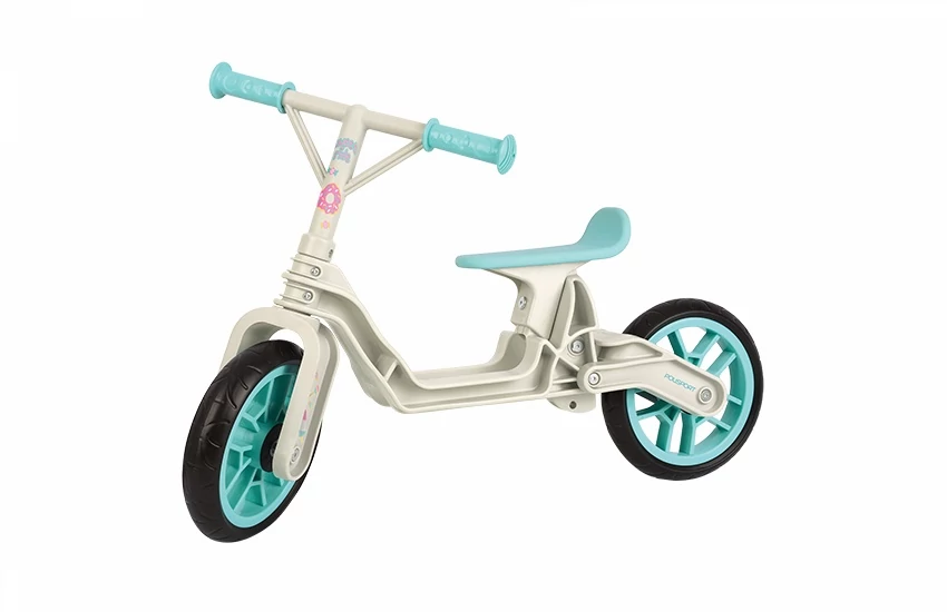 Polisport futókerékpár összehajtható, könnyű műanyag, teli kerekes, 3 magasságban állítható (32-35 cm), krém/mentazöld
